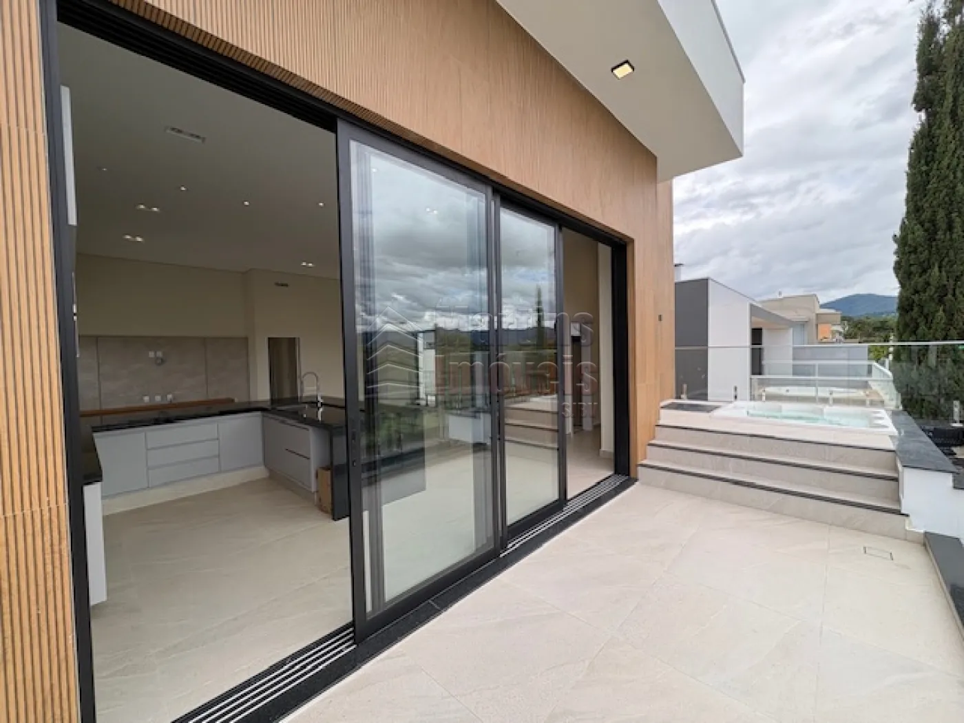 >>> Imóvel acima da média: arquitetura moderna, linhas retas, varanda com guarda-corpo em vidro, área social integrada com cozinha planejada, ilha com granito preto, portas de correr grandes e uma hidro no terraço com vista incrível para a serra.