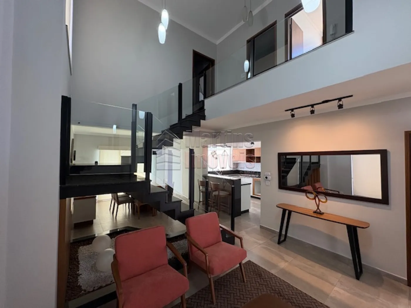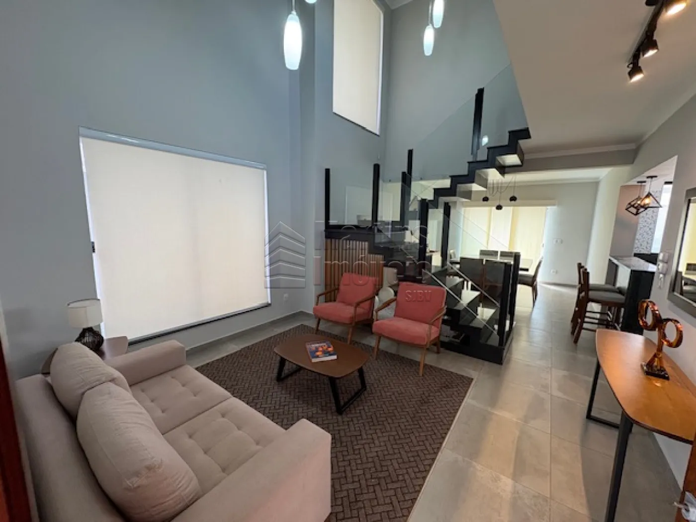 >>> Área Social: Ampla sala de estar com pé-direito duplo, integrada à sala de jantar e cozinha gourmet, promovendo sensação de amplitude e iluminação natural.